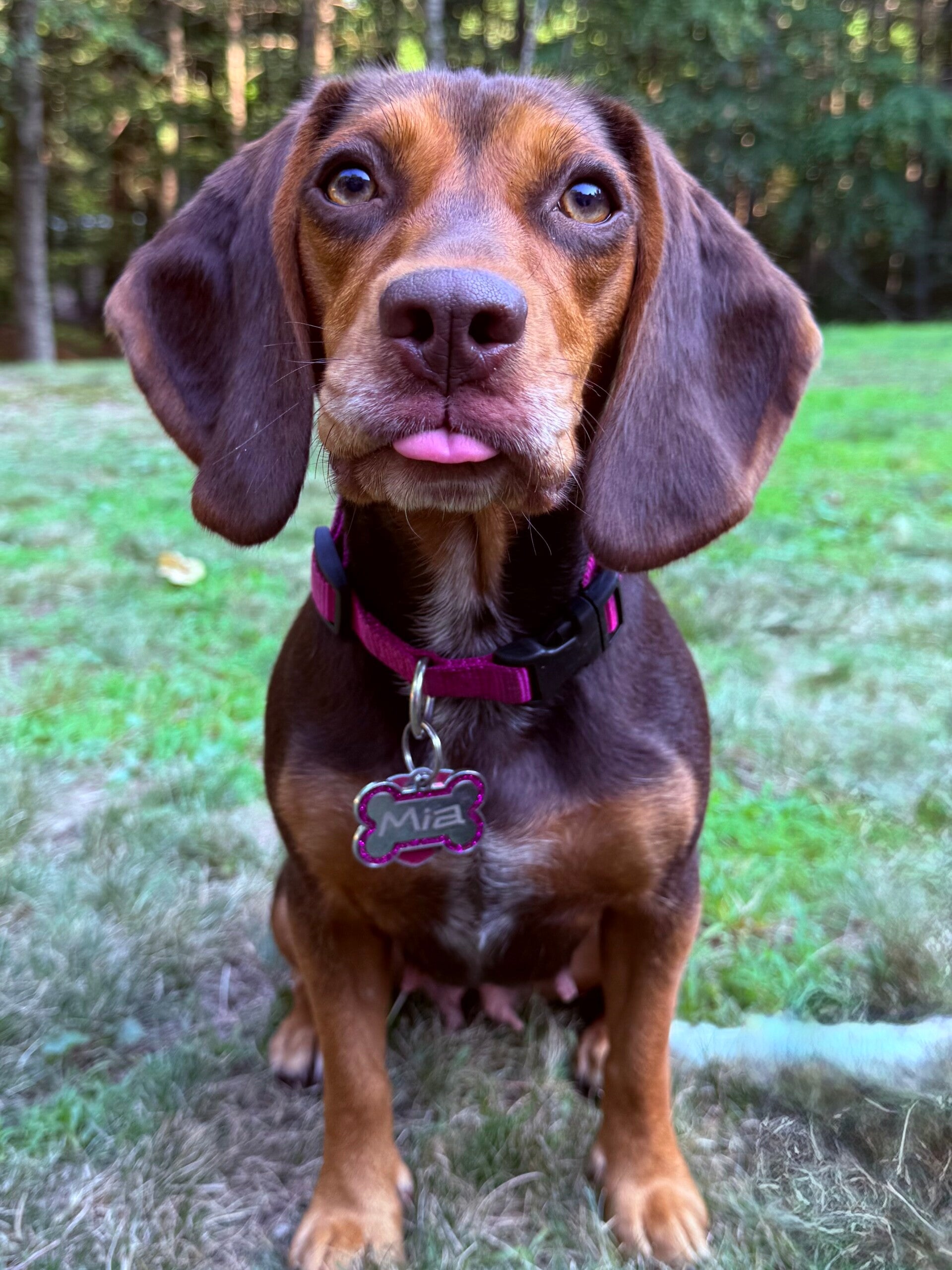 Meet Mia – our beautiful chocolate beagle with a big personality and an even bigger heart! Sassy yet sweet, Mia rules the house with her adorable attitude and irresistible charm. She loves playing fetch, sprinting through the yard like a rocket, and making sure everyone knows who’s boss (hint: it’s her). Despite her bold streak, Mia is incredibly affectionate and never turns down a cuddle. She’s the perfect mix of spirited energy and loving warmth — our little queen with a wagging tail.